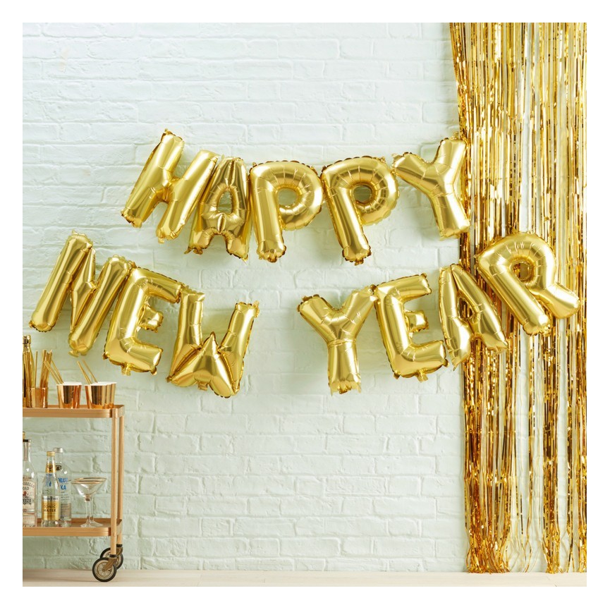Drücken Sie sich mit LuftballonS aus ! 12 goldene Buchstaben-Folienluftballons für die Gestaltung von "Happy New Year" ! Eine Pop-Dekoration für Ihr Zuhause !