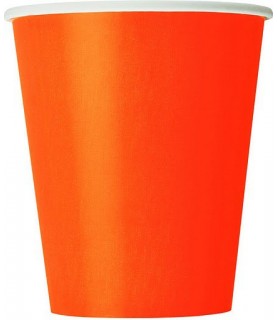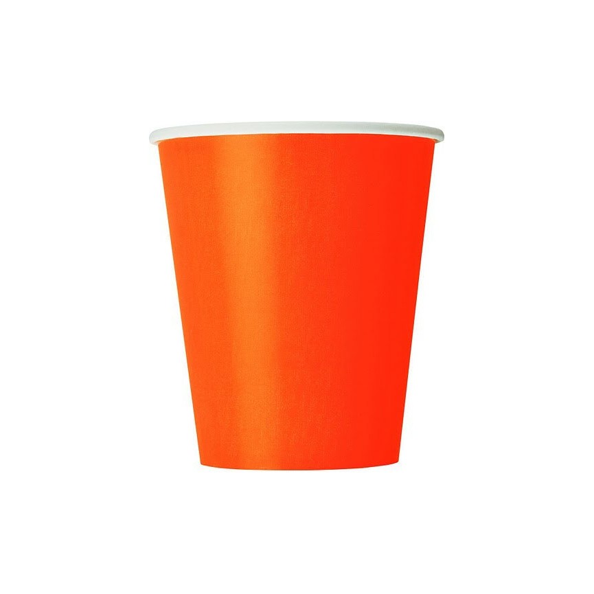 Jedes Paket enthaelt 14 Orange Becher aus Pappe.