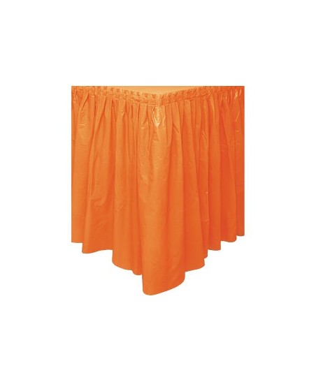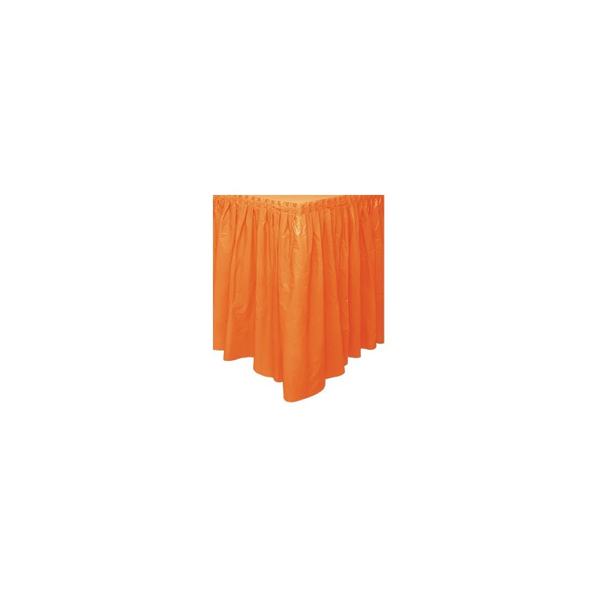 Oranger Tischrock aus Plastik mit Klebeband auf der Rueckseite.