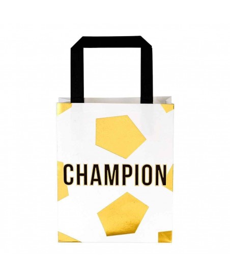 Keine Gefahr eine rote Karte zu bekommen mit dieser schönen vergoldeten Fußballware! Diese Geschenktaschen sind mit metallischen Golddetails verziert. Sie ist perfekt für die Geburtstage aller Fußballmeister und Fußballfans!