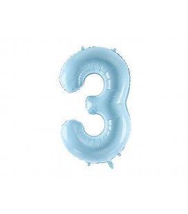Pastellblauer "Super Shape" Folienballon, der Ihren Saal dekoriert und mit Stil die Nummer 3 anzeigt!