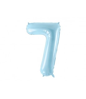 Pastellblauer "Super Shape" Folienballon, der Ihren Saal dekoriert und mit Stil die Nummer 7 anzeigt!