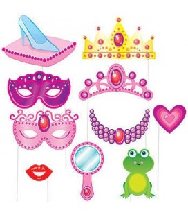Photobooth-Satz mit 10 verschiedenen Elementen auf Stäbchen.