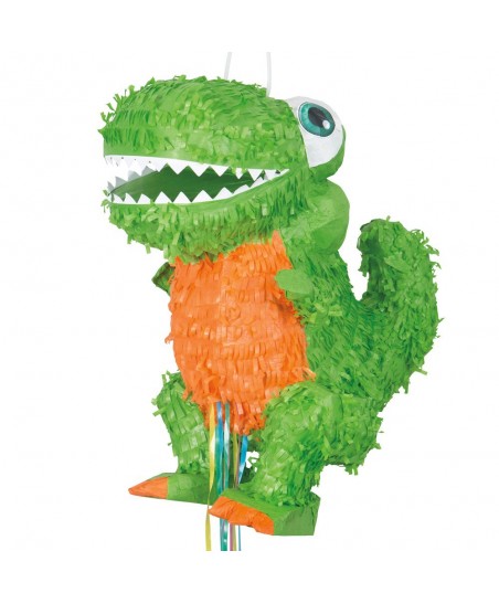 Die Pinata ist ein wesentliches Element einer Geburtstagsparty. Abgesehen davon, dass sie Spaß macht, gibt sie der Party eine originale Wendung. Lassen Sie sich von dem Spiel mit dieser T-Rex-Pinata reizen, wo jedes Kind versuchen muss, sie mit verbundenen Augen mit dem Stock zu zerschlagen, um die innen versteckten Bonbons, Spielsachen oder Konfettis zu befreien! Pinata wird nicht gefüllt geliefert.