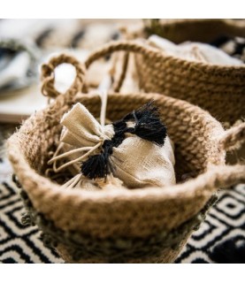Diese entzückenden Leinenbeutel mit schwarzen Bommeln verziert eignen sich perfekt zum Verpacken und Präsentieren kleiner unvergesslicher Geschenke für Ihre Gäste. Sie können dann wiederverwendet werden, um kleine Schätze und andere süße Gegenstände aufzubewahren. Eine schicke und umweltfreundliche Art, Ihre kleinen Geschenke zu präsentieren!