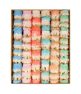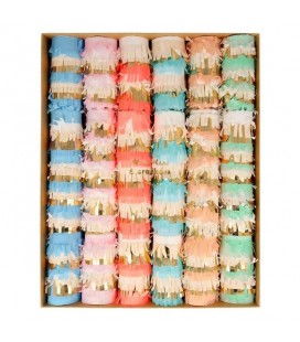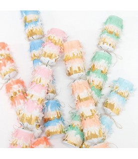 Diese fabelhaften Fransen-Knallbonbons in schönen Pastelltönen, mit Fransendetails aus Stoff und Goldfolie, machen Ihren Partytisch so trendy! Sie enthalten jeweils einen Witz, einen Hut und ein kleines Geschenk, dass die Leute glücklich macht !