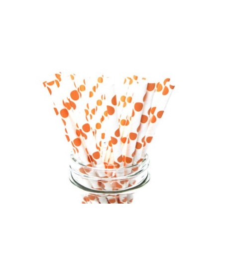 25 Papier-Trinkhalme mit Orange Punkten