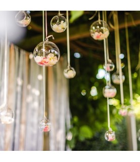 Diese offene Glaskugel zum Hinstellen oder Aufhängen begrüßt in ihrer Mitte Blütenblätter, Kerzen und Dekoration aus allen Horizonts, was sie wunderschön und einzigartig aussehen lässt. Sie verleiht Ihrer Tisch- und Partydekoration eine poetische Note und bringt einen leichten, zarten Look.
