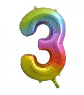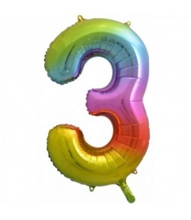 "Super Shape" Folienballon in Farbe metallic Regenbogen, der Ihren Saal dekoriert und mit Stil die Nummer 3 anzeigt!