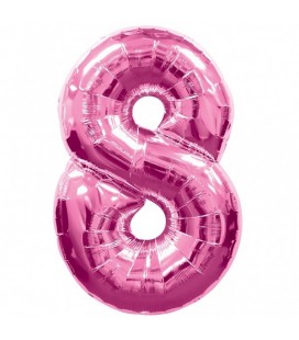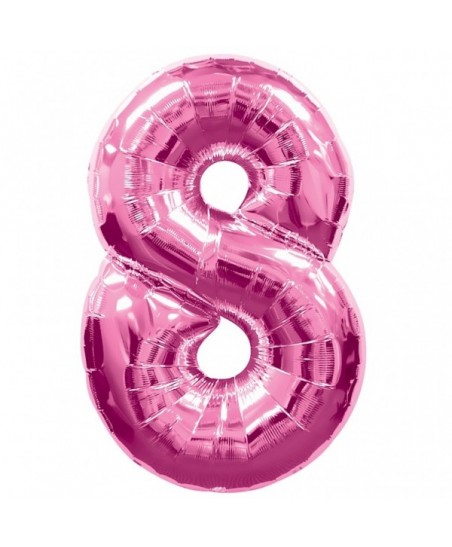 Metallic rosa "Super Shape" Folienballon, der Ihren Saal dekoriert und mit Stil die Nummer 8 anzeigt!