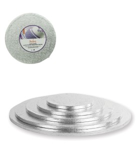 Diese Platte, auch Kuchentrommel, Kuchenbrett oder Kuchenblech genannt, besteht aus hochwertigem festem Karton mit einer Dicke von 12 mm und ist sehr widerstandsfähig. Sie trägt den Kuchen, ohne sich zu verbiegen oder den Kuchen zu verformen.