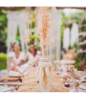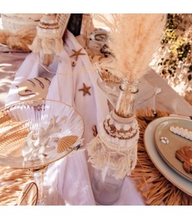 Diese prächtige Glasflasche mit Muscheln und ecrufarbenen Pompons wird Ihre Dekoration aufwerten! Auf einem Tisch oder einem Buffet wird sie eine wunderschöne, raffinierte und natürliche Note verleihen. Spielen Sie mit der Transparenz der Flasche und der Farbe der Details. Sie können sie auch als Vase für Blumen oder Pampas verwenden, wenn Sie eine trendige Dekoration mit bohämischen Chic wünschen!