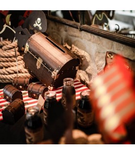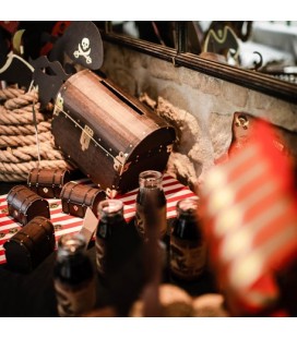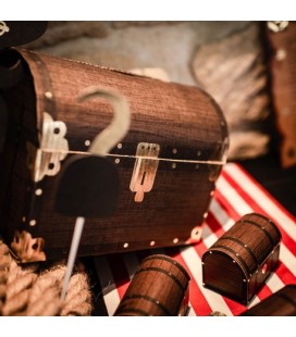 Diese Urne in Form einer Schatzkiste wird dem Tisch und Ihrer ganzen Dekoration den letzten Schliff geben. Benutzen Sie sie, wenn Sie eine Schatzsuche machen, Sie können kleine Hinweise hineinstecken.