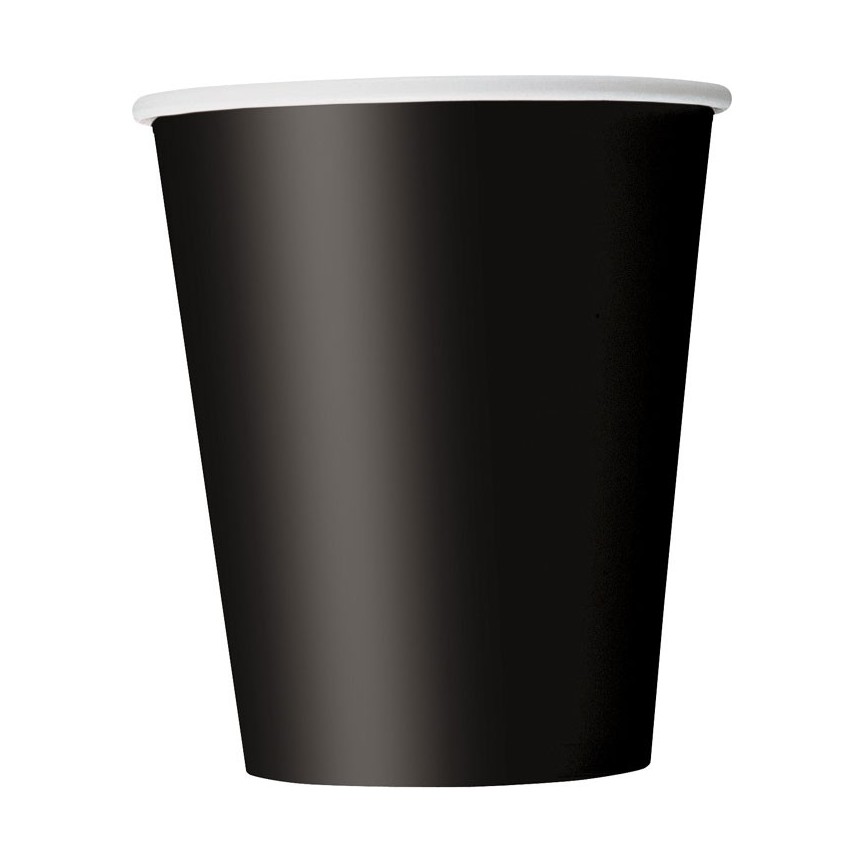 Jedes Paket enthaelt 14 Schwarze Becher aus Pappe.