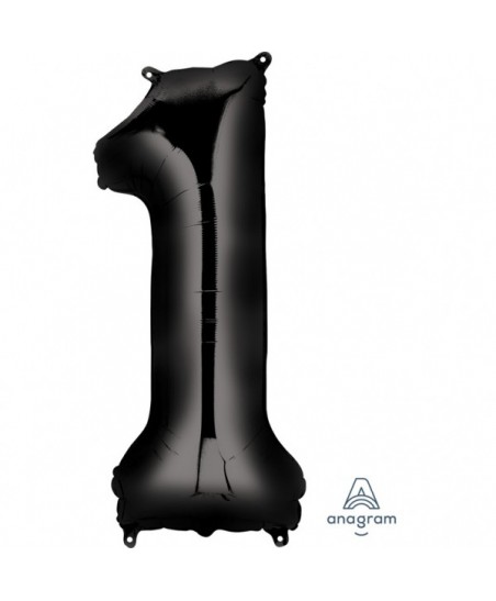 Metallic schwarzer "Super Shape" Folienballon, der Ihren Saal dekoriert und mit Stil die Nummer 1 anzeigt!