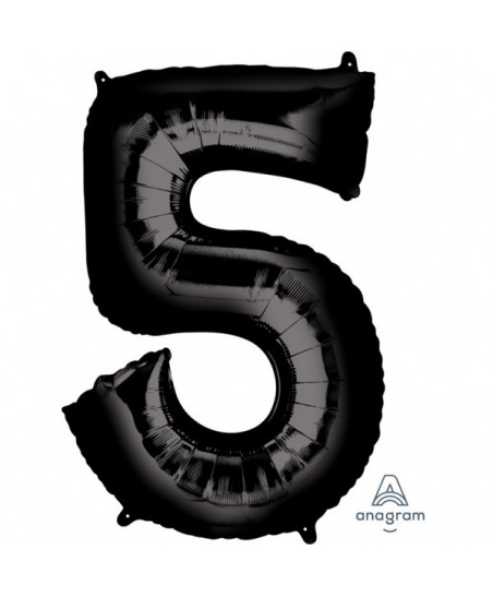 Metallic schwarzer "Super Shape" Folienballon, der Ihren Saal dekoriert und mit Stil die Nummer 5 anzeigt!