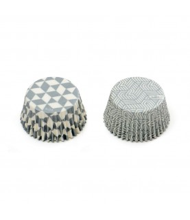 36 Cupcake-Hüllen 'Silberne Geometrie'