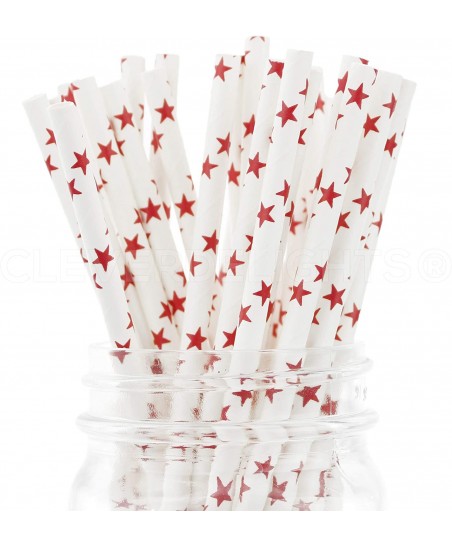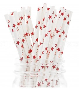 24 Rote Sternchen-Papier-Trinkhalme. Ideal um Ihren Partys einen Retro-Look zu geben!