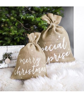 Zurück zu Traditionen der Originalität und Modernität mit diesem Sackleinen- Geschenkesack vom Weihnachtsmann mit weißem Sternendruck. Er ist solide und dekorativ. Kinder und Erwachsene werden von diesem schönen Paket am Fuße der Tanne mit der Aufschrift "Special Surprise" begeistert sein!