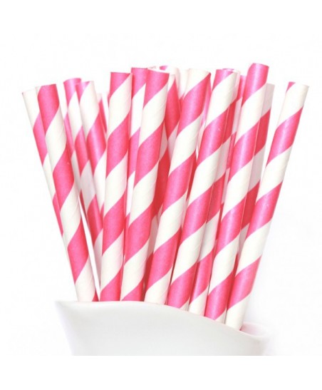 24 Magenta Gestreifte Papier-Trinkhalme