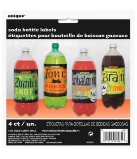 Verzieren Sie Ihre Getränkeflaschen mit diesen 4 Klebe-Etiketten mit furchterregenden Namen wir Toxic Punch und Brain Tonic. Kleben Sie sie direkt auf Ihre 2-Liter-Flaschen, mit ihren Neonfarben und Gespenster-Design! Mit ihren Retro-Looks und schrecklichen Namen werden sie Stil und Grusel in die Party bringen! Trinke, wenn du es wagst!