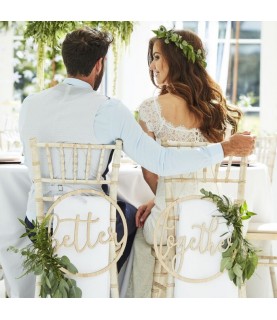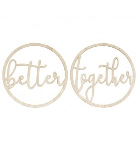 Die Dekoration der Stühle von Braut und Bräutigam sind der große Trend bei Hochzeiten. Diese schönen Hochzeitstafeln aus Holz mit der Aufschrift "better together", (bedeutet "besser zusammen“) erwähnen Romantik und rustikalen Chic. Hängen Sie sie auf die Rückenlehnen der Stühle, um die Plätze des Brautpaares mit einer poetischen Note zu bestimmen. Dekorieren Sie die Tafeln gemäß Ihrem Thema, indem Sie Blumen, Federn oder andere Accessoires hinzufügen und somit Ihr Dekor bis ins letzte Detail hervorheben.