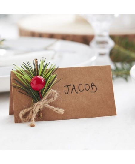 Erstellen Sie einen stilvollen und rustikalen Weihnachtstisch mit diesen Platzkarten aus Kraftpapier verziert mit Tanne. Eine großartige Möglichkeit, um sicherzustellen, dass Ihre Gäste an den idealen Platz um Ihren Tisch sitzen.