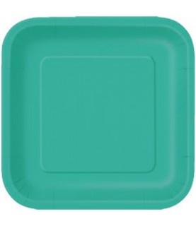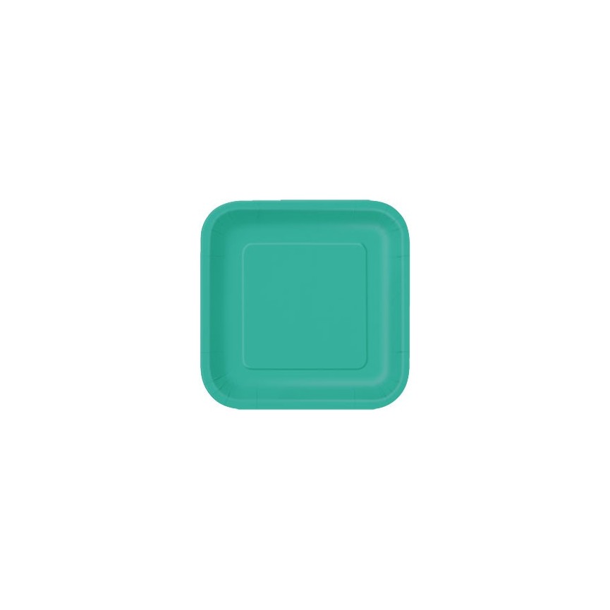 Jede Packung enthaelt 14 große türkisblaue Pappteller.