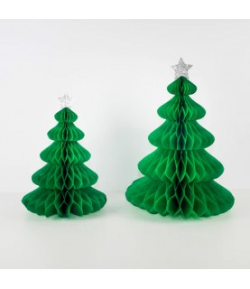 Diese Dekoration in Form von Weihnachtsbäumen aus wabenförmigem Papier passt hervorragend zu Ihrer Festverschmückung. Die Packung enthält 2 prächtige Tannen in verschiedenen Größen, die mit einem kleinen Glitzerstern verziert sind. Sie verleihen einen wirklich stilvollen 3D-Effekt !
