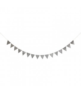 Ideal für die Dekoration einer festlichen Szene ! Diese stilvolle Girlande hat dreieckige Fähnchen, die mit großen, silbernen Pailletten verziert sind, und sie wird mit einem natürlichen Baumwollband aufgehängt.