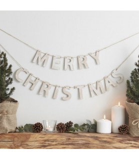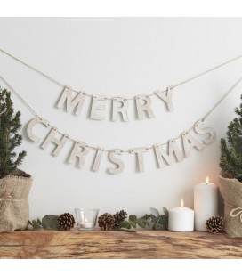 Beginnen Sie die Feierlichkeiten mit Stil! Für eine rustikale Retro-Dekoration benutzen Sie diese schöne "Merry Christmas" Holzgirlande! Sie verleiht Ihrer Dekoration, Ihrem Kamin oder Ihrer Treppe eine festliche Note und passt perfekt zu einem skandinavischen Stil, einer rustikalen oder botanischen Dekoration.