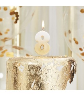 Eine schöne, moderne Nummernkerze in schattiert goldener Farbe. Einfach in den Kuchen stechen und schon bringen Sie Ihre Party zum Schimmern! Ihr Kuchen ist dekoriert und bewirkt Glitzer und tausend Lichter. Sie sollten sich etwas wünschen!
