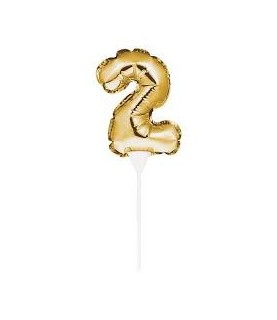 Goldener Cake Topper Miniluftballon Ziffer 2