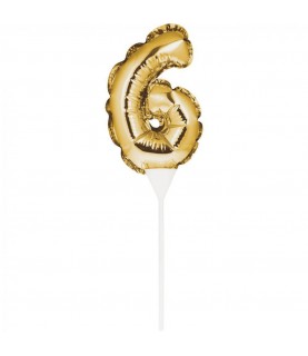 Goldener Cake Topper Miniluftballon Ziffer 6