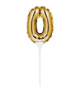 Goldener Cake Topper Miniluftballon Ziffer 0