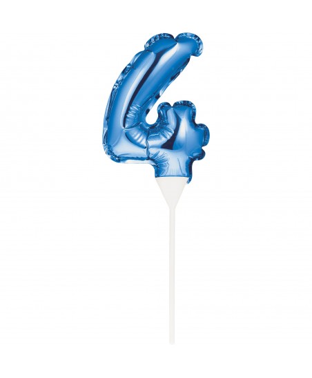BLAUER CAKE TOPPER MINILUFTBALLON ZIFFER 4