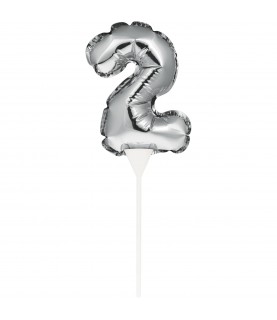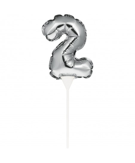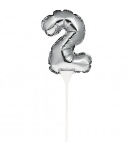 Silberner Cake Topper Miniluftballon Ziffer 2