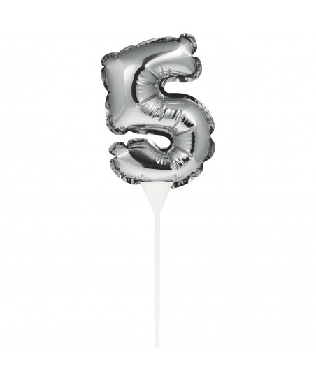 Silberner Cake Topper Miniluftballon Ziffer 5