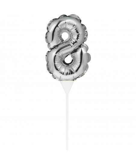 Silberner Cake Topper Miniluftballon Ziffer 8
