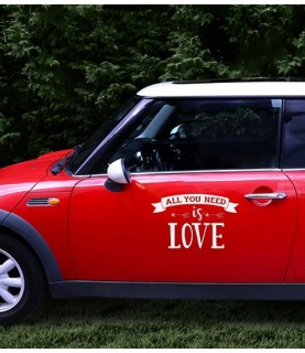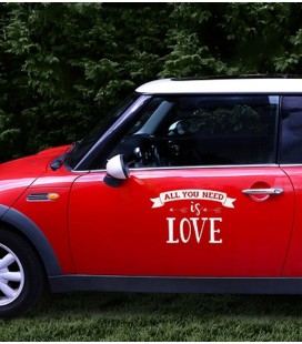 Dieser Aufkleber "All you need is Love" schmückt das Auto von Braut und Bräutigam, während er am Hochzeitstag eine trendige und originelle Note verleiht. Eine großartige Möglichkeit, all denen, die Sie auf Ihrem Weg treffen, Ihr Glück, Ihre Liebe und Ihre Vereinigung zu zeigen. Drücken Sie auf die Hupe und teilen Sie Ihre Freude!