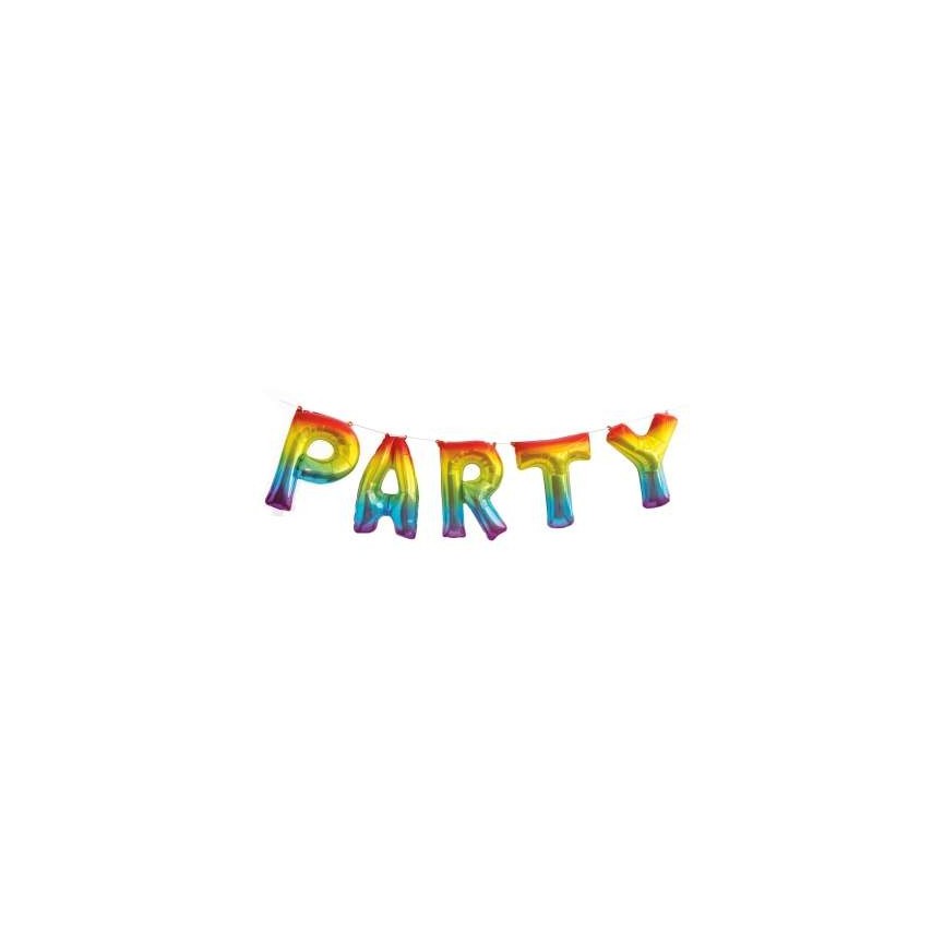 One word says it all! Party! One word. One balloon. Make a statement with this rainbow "Party" foil balloon. It will add a touch of fun and pop to your deco!