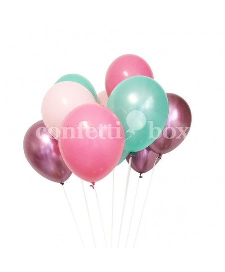 This bouquet contains 12 biodegradable Qualatex balloons. Shipped flat and without curling ribbon (string).