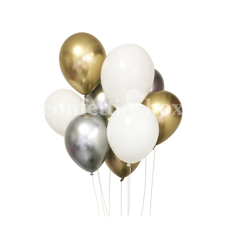 Bring your party to life with style and chic with this gorgeous balloon bouquet. It is a lovely way to brighten and jazz up any party room while adding a modern and fun touch. These balloons are perfect in a bundle for a shimmering effect or scattered around the room.