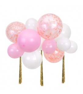 Party decoration kit to make a big pink cloud of balloons, to inflate and assemble.