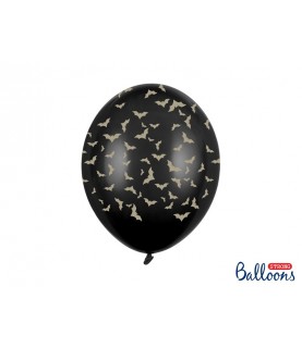 These black latex balloons are printed with golden bats. Perfect balloons for your decoration on Halloween night! You can inflate then with air and arrange them on the ground or in a garland of balloons, you can also inflate it with helium so they float.