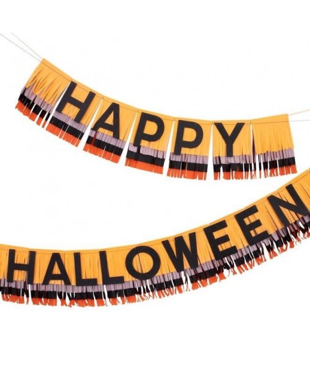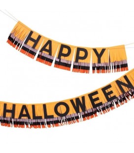 Spread joy of Halloween with this "Happy Halloween" garland. It is beautifully made of tissue paper with fringes and will decorate your party room splendidly.