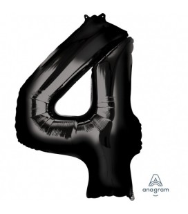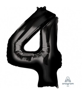 Black "Super Shape" metallic Mylar balloon that will decorate and indicate with style the number 4!