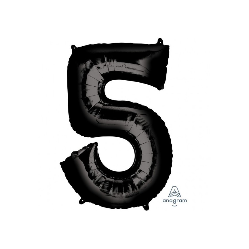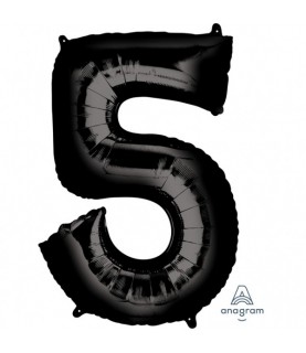 Black "Super Shape" metallic Mylar balloon that will decorate and indicate with style the number 5!