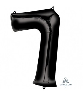 Black "Super Shape" metallic Mylar balloon that will decorate and indicate with style the number 7!