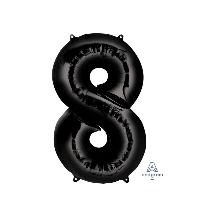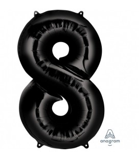 Black "Super Shape" metallic Mylar balloon that will decorate and indicate with style the number 8!